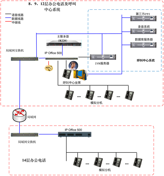 IP Office 500V2 Sever Edition(S8100)典型案例(li),集中(zhong)管理(li),遠(yuan)程網(wang)關注冊。辦公及呼叫中(zhong)心集中(zhong)應用。